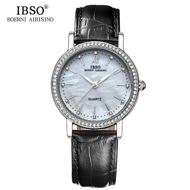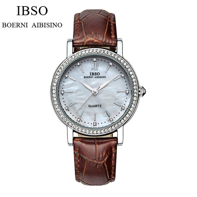 IBSO Brand Fashion Woman Watches Leather Strap Watch Women Luxury Crystal Diamond 2018 Quartz Wristwatches Montre Femme
